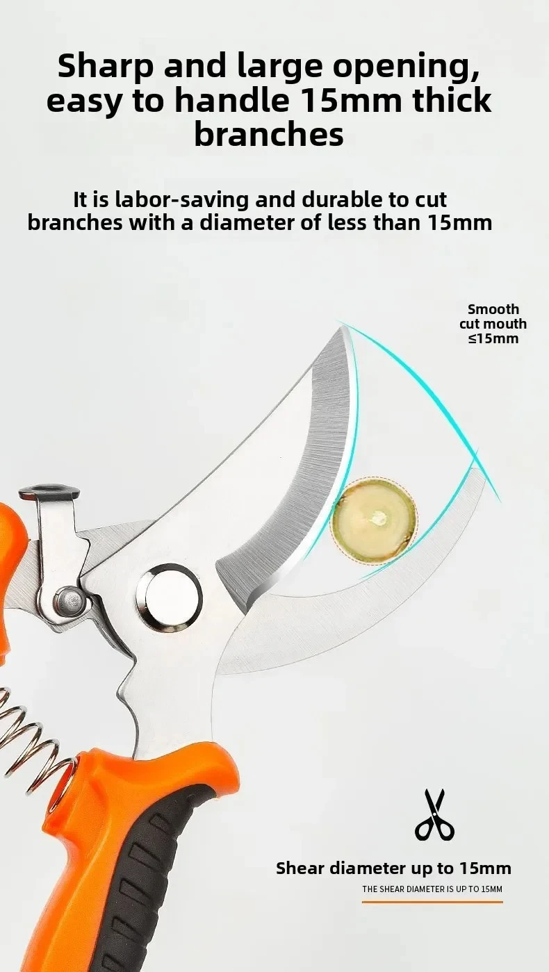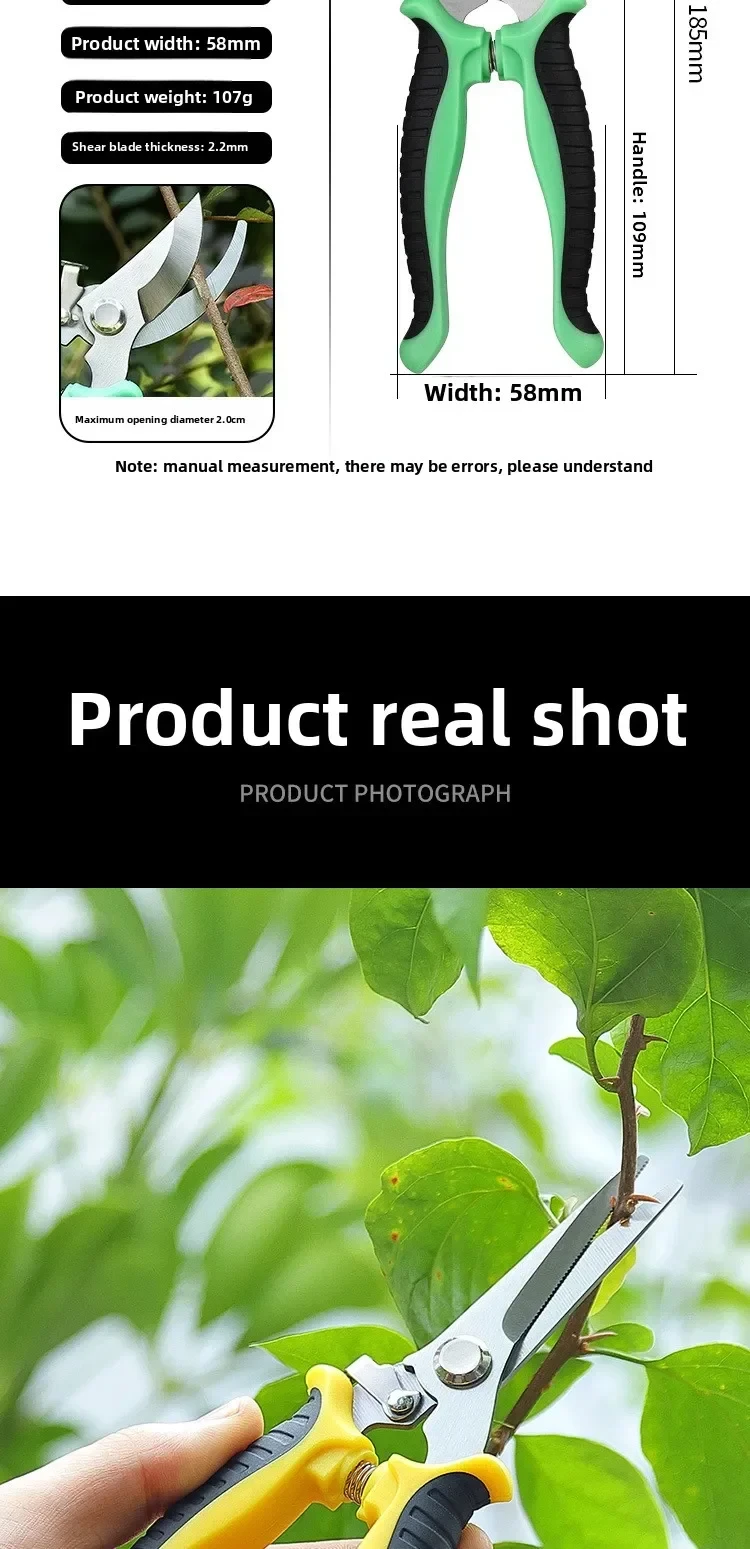 Tesoura de poda de cabeça reta 190mm, cabo antiderrapante, ferramentas manuais de aço inoxidável, bonsai doméstico, tesoura de jardim, tesoura de perfuração